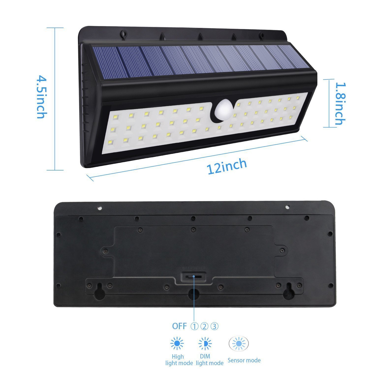 Strong Light Sensor Mode : In night, the light will be strong bright when people comes , then 15 seconds later, the light dies automatically.